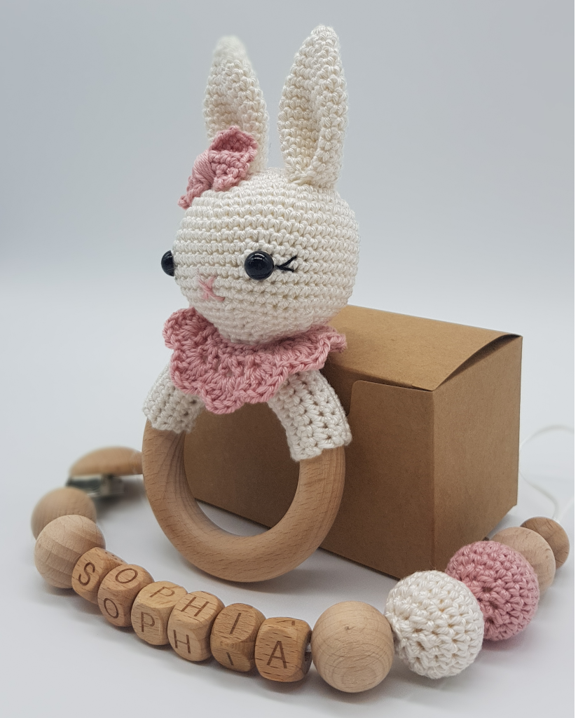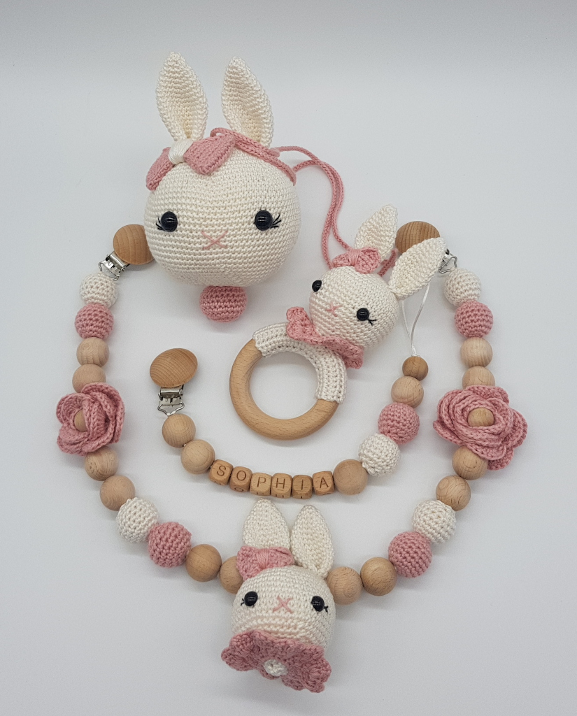 Wunderschönes handgemachte Hasenset mit premium Holzperlen